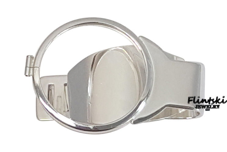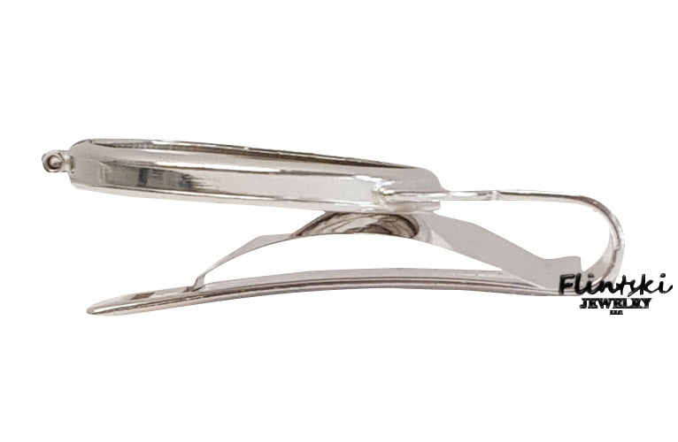 Spring Back Money Clip is made of Sterling Silver. The coin edge bezel has a screw top that holds your coin