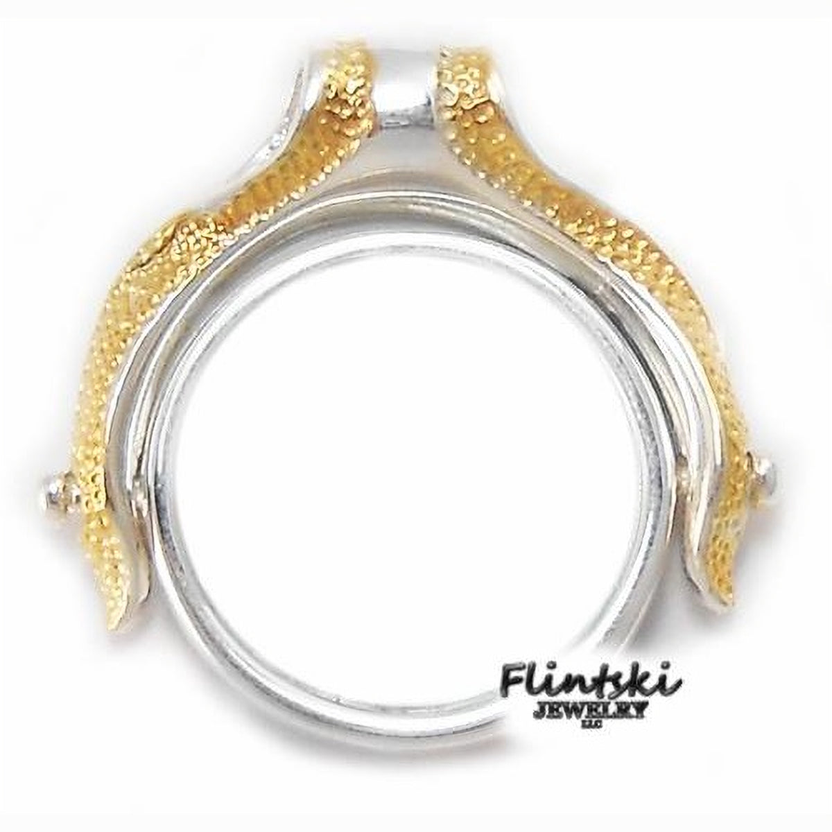 This Two Toned pendant has 4 tabs on the back side to secure your coin in place.