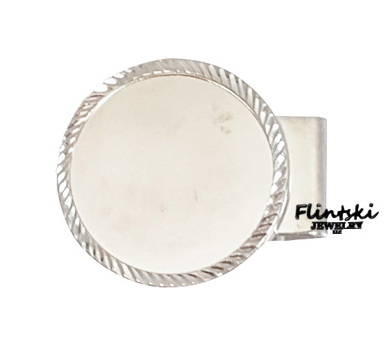 The bezel of the money clip is Sterling Silver diamond cut and the hinged part is rhodium plated.